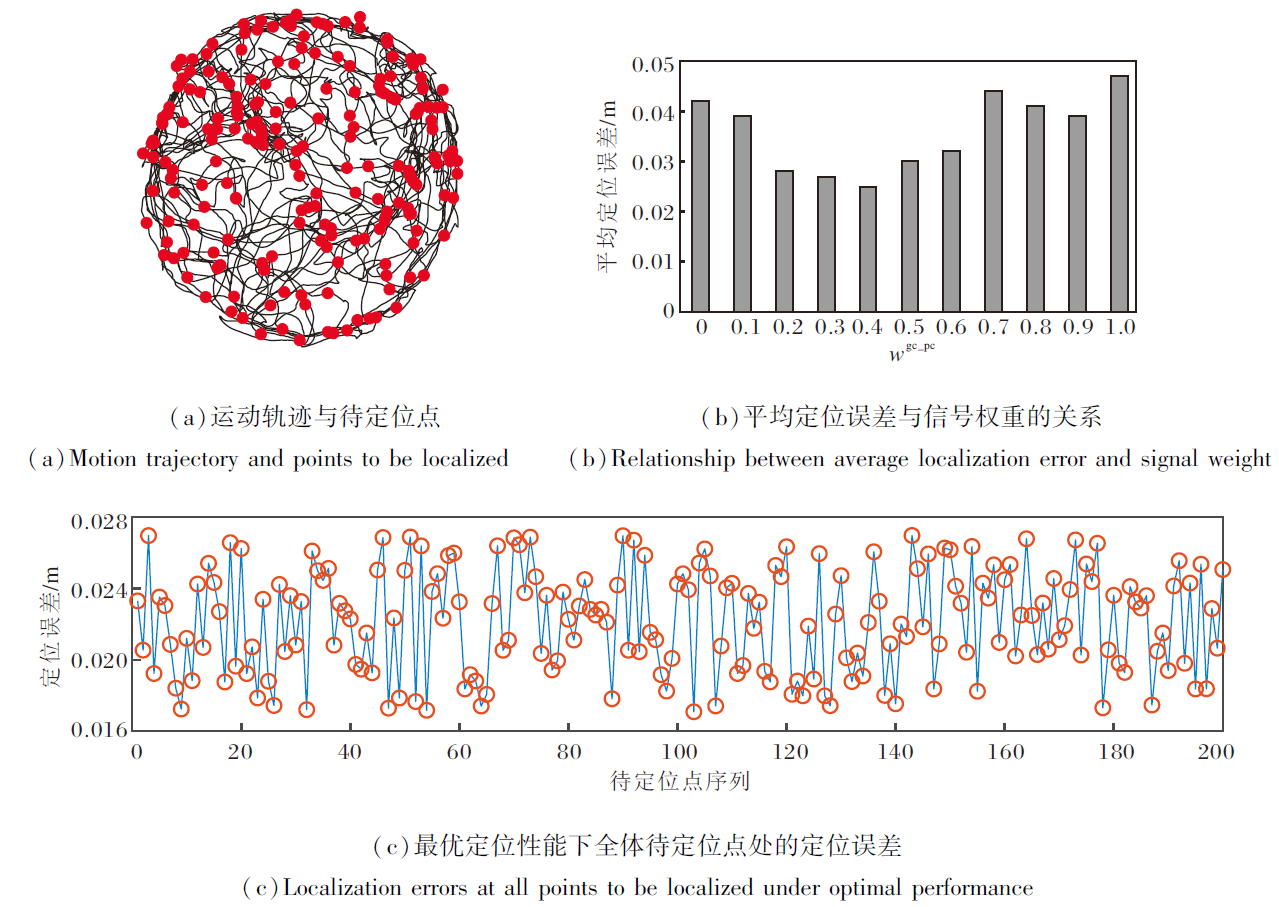 由图9(b)可看出, 对于定位性能而言, VCO信号Fvco_pc和网格细胞编码信号Fgc_pc呈互补关系.当wvco_pc或wgc_pc偏向极端值时, 平均定位误差显著增大.当wvco_pc过高(VCO信号起主导作用)时, EHPI过度依赖持续的运动节律与矢量线索, 容易受振荡器的稳定性问题和干涉同步性不足的影响, 在复杂动态路径中导致位置估计不精确.当wgc_pc过高(网格细胞起主导作用)时, EHPI强调周期性的空间锚点, 但缺乏连续动态更新, 容易在非结构化路径中产生定位模糊.多次实验发现, 当wvco_pc=0.56, wgc_pc=0.44时, EHPI达到最佳定位性能, 平均定位误差为0.022 m.这一实验结果进一步证实位置细胞多源输入的优势, 即VCO信号提供平滑的运动积分基础, 而网格细胞放电作为离散锚点可降低偏差, 二者在位置细胞层汇聚整合, 形成单一、稳定的位置认知信号.