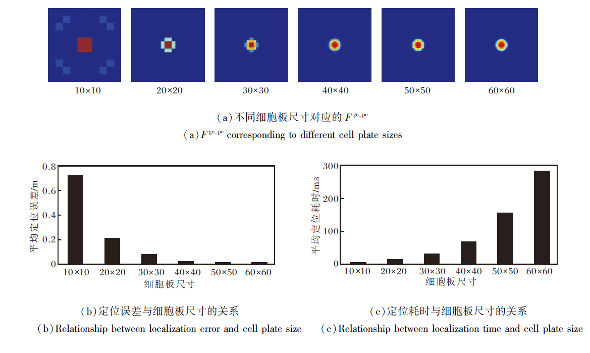 值得注意的是, 当网格细胞数量大于40后, 再增加也不会显著降低定位误差, 但每次定位所需的计算耗时却与网格细胞数量呈正相关.因此, 权衡定位精度与计算复杂度, 选择40作为后续实验中网格细胞数量.
