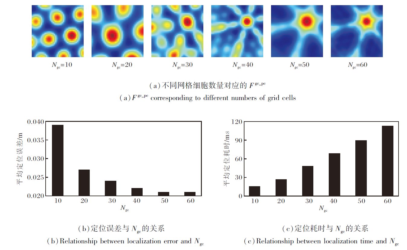 然后, 定义位置细胞板尺寸为40× 40, 分别设定网格细胞数量Ngc=10, 20, 30, 40, 50, 60, 不同网格细胞数量的实验结果如图11所示.