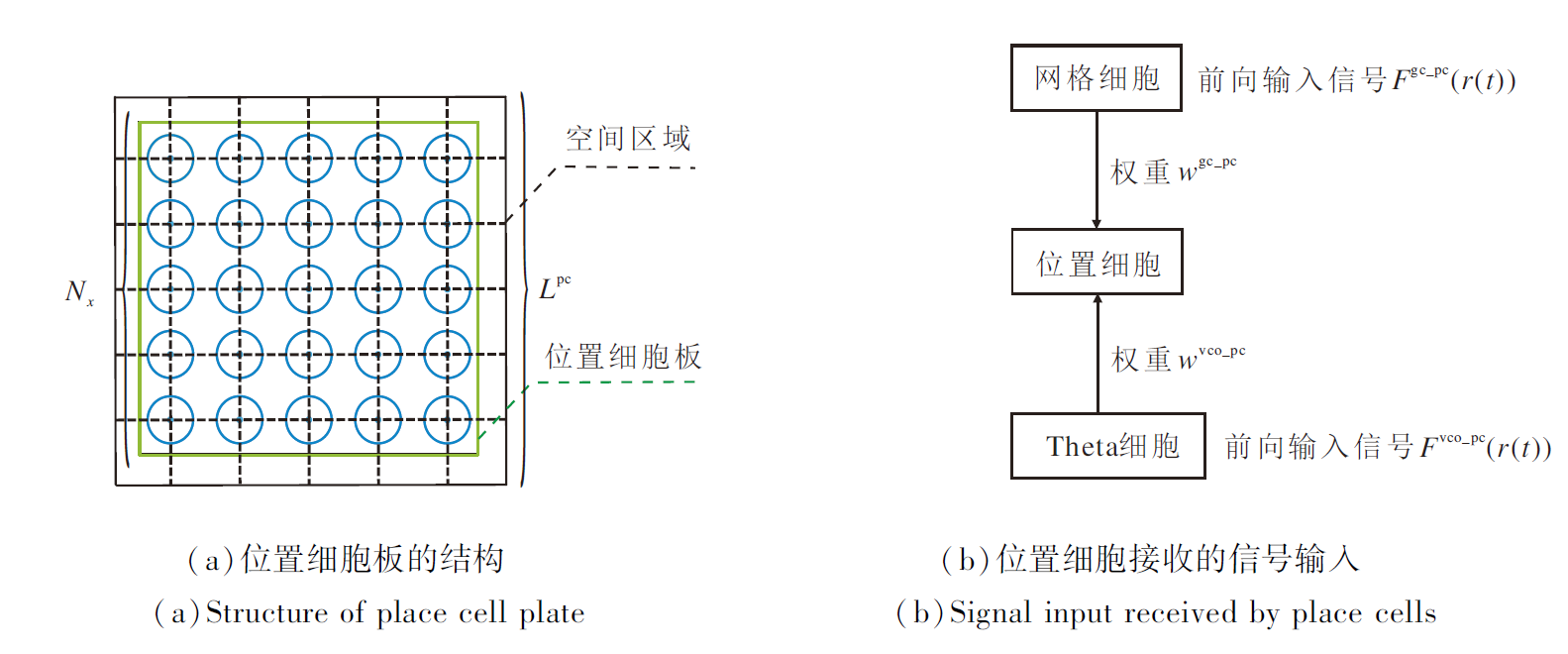 其中, i、 j分别表示位置细胞在细胞板中所处的行列数, Lpc表示细胞板编码正方形空间区域的边长, Nx表示细胞板边长(即位置细胞个数为