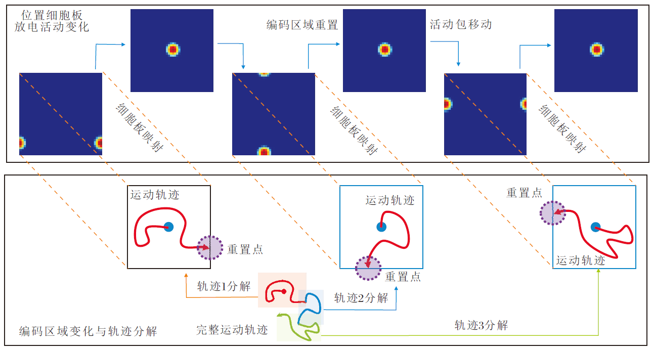 当智能体在空间中移动时, 网格神经板类似于一个滑动窗口, 在空间区域内的移动能编码不同区域的网格野, 从而模拟网格细胞放电活动的变化[36], 具体如图3(b)所示.