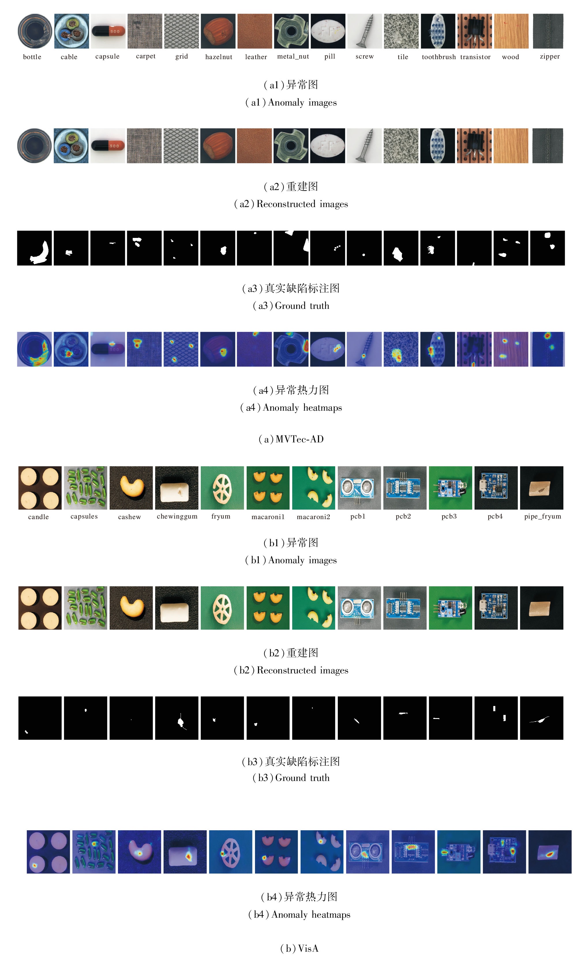 本文选择在MVTec-AD[8]、VisA[9]这2个公开异常检测数据集上进行实验.