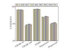 训练总周期设为200, 初始学习率设为0.1, 在迭代次数分别为60, 120, 160时将学习率缩减为原来的1/5, 采用随机梯度下降(Stochastic Gradient Descent, SGD)优化器.在CIFAR-10、CIFAR-100、SVHN数据集上批次大小为128, 在Imagenette、Ima- gewoof数据集上批次大小为64.
