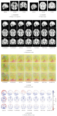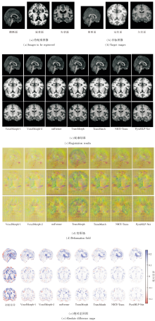 | 图8 各方法在OASIS数据集上一个样本图像的配准结果Fig.8 Registration results of different methods on a sample image from OASIS dataset |