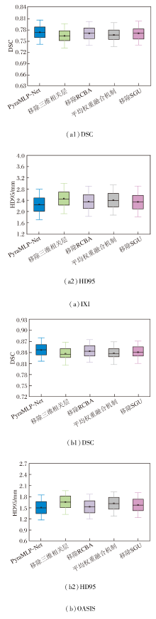 为了评估PyraMLP-Net的优势和结构的合理性, 分别设计系统级和组件级消融实验.所有实验均保持统一参数设置, 在IXI、OASIS数据集上进行验证.