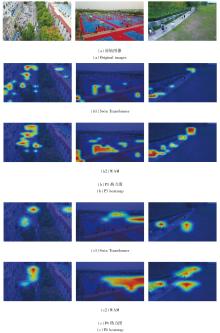 为了说明SPM对无人机图像小目标在浅层网络保留小目标细节的作用, 将主干网络第2个层级输出特征图(P2)和第3个层级输出特征图(P3)进行热力图绘制, 包括Swin Transformer生成的特征图及在空间先验模块(SPM)作用下的特征图, 具体如图5所示.生成特征图的权重同样来自消融实验.另外, 由于DB-TS的第1个层级特征图并未作为输出特征图, 因此未用于制作热力图.