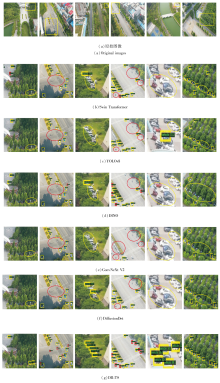 为了更方便区分DB-TS可视化结果, 在其它方法的可视化结果中使用黄圈和红圈手动标记相对DB-TS来说未被检测的目标.从JZ-UAV数据集的可视化结果也可看出, 无人机高空图像中小目标居多, DB-TS检测的目标数量多于对比方法.