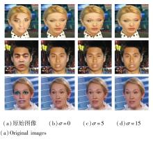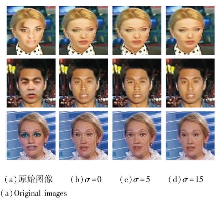 为了直观展示融合后的视觉效果, 在r=15时, 设置σ =0, 5, 15, 对融合图像进行可视化, 结果如图4所示.由图可明显看到, σ 的引入明显减少图像的振铃现象.因此, 适度的平滑过渡有助于在保留伪造痕迹与避免产生视觉伪影之间取得平衡, 提升检测的鲁棒性.
