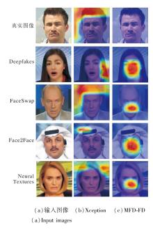 由表1可见, MFD-FD在2个数据集上的平均AUC值达到0.999 6, 为最优, 其中在FF++数据集上达到0.999 9, 这表明在数据分布一致时, MFD-FD能有效挖掘和识别伪造痕迹.