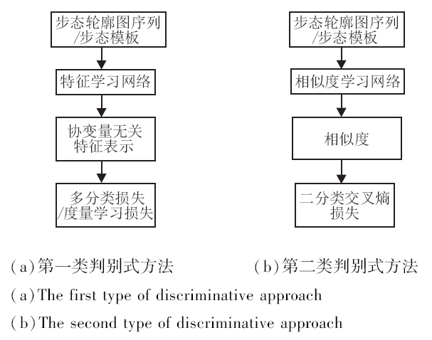 近年来涌现出不少利用深度神经网络进行步态识别的研究工作.本节依据文献[11]中的划分方式将现有的基于深度学习的步态识别方法分成判别式方法和生成式方法2类, 并分别介绍每类方法.