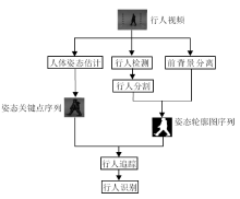 图1展示上述步态识别任务的流程图.本文主要集中论述流程图中行人识别阶段的相关算法.